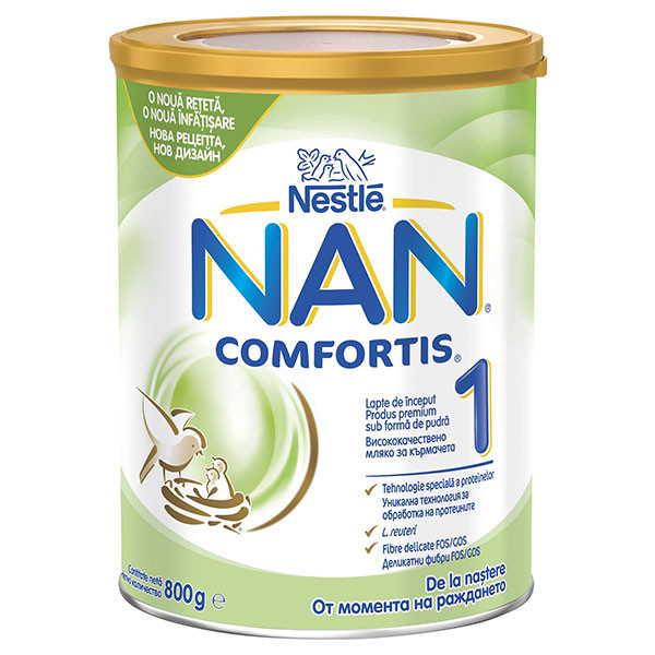 Подходящо за консумация от момента на раждането, обогатеното мляко на прах за кърмачета НАН е създадено за комфорт на храносмилането и задоволяване на хранителните нужди на бебето. Съдържа двойно количество DHA, пробиотичната култура L. reuteri и деликатни фибри. Създадено с технологията Optipro, която оптимизира (усъвършенства) протеините, както по отношение на качество, така и по отношение на количество. Предлага се в метална кутия от 800 г.
