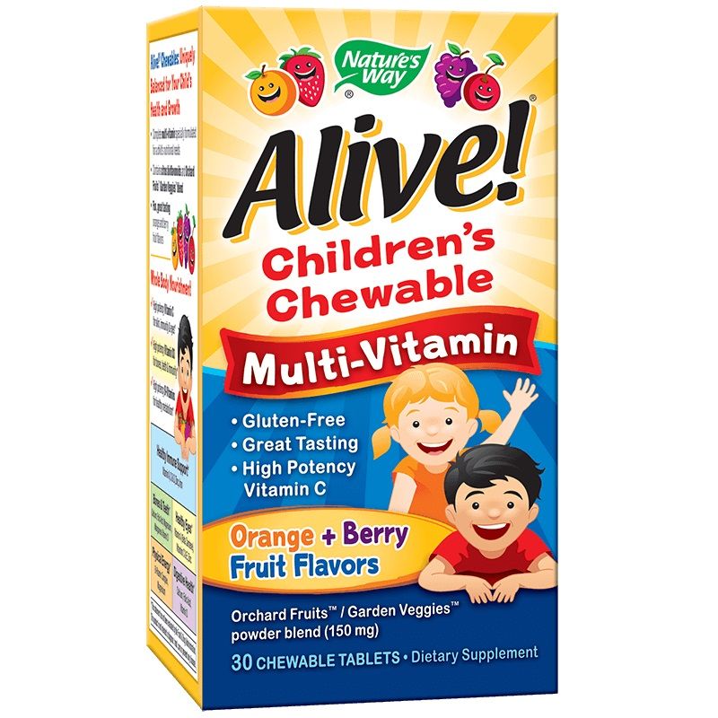Alive Children’s Chewable Multi-Vitamin на Nature’s Way са определяни като Whole foot мултивитамини, които се отличават с пълноценния си състав. Освен вложените минерали и витамини, съставът им изобилства от растителни съставки – екстракти от зеленчуци и плодове, антиоксиданти, медицински гъби, зелени храни, ценни нутриенти, зелени храни.