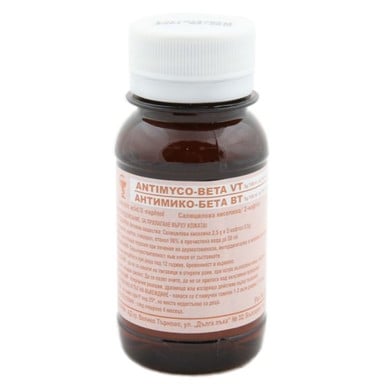 Антимико-Бета (Antimyco-beta) на фармацевтичната компания Вета Фарма е антимикотичен и антисептичен лекарствен продукт под формата на разтвор, който се прилага като съпътстващо лечение при интердигитална и ингвинална епидермофития и дерматомикози на гладката кожа и окосмената област на главата