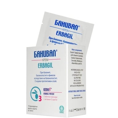 Banival на марката Erbagil е нов продукт за озонтерапия при инфекции на пениса – баланит, баланопостит и фимоза вследствие на баланопостит. Прилага се локално върху засегнатата област. Създава защитен слой. В състава му влиза патентована формула OZOILE®, създадена на основата на озониране на Extra Virgin зехтин Primo Fiore® до високо насищане с озоно-кислородна смес. Озонотерапията е съвременна медицинска алтернатива с клинично доказано противовъзпалително, антибактериално и дезинфектиращо, противогъбично и регенеративно действие. Няма данни за старнични ефекти, може да се използва без възрастови ограничения. Подходящ е включително за деца, юноши и възрастни хора. Не съдържа глутен, оцветители и алергени. Преминати са микробиологичен тест, тест за кожни алергии и тест за цитотоксичност. Предлага се в опаковка от 10 сашета.