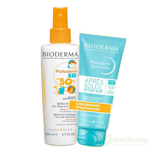 Photoderm KID предлага оптимална защита за деца срещу UV лъчите (слънчево изгаряне, слънчеви алергии и др.) благодарение на уникална комбинация от дерматологични анти-UVA и анти-UVB филтри. Photoderm KID предлага и вътрешна биологична защита чрез изключителния патент CELLULAR BIOPROTECTION**. Той активира естествените защитни сили на кожата и предпазва клетките. Този патент е съчетан специално с пептид С, за да повиши прага на поносимост на деликатната детска кожа. Светлосиният цвят на млякото позволява видимото и равномерно нанасяне на продукта на цялото лице и тяло, което гарантира оптимална защита. Цветът изчезва веднага след нанасянето. Бързо попиващата текстура не оставя мазен слой и следи.