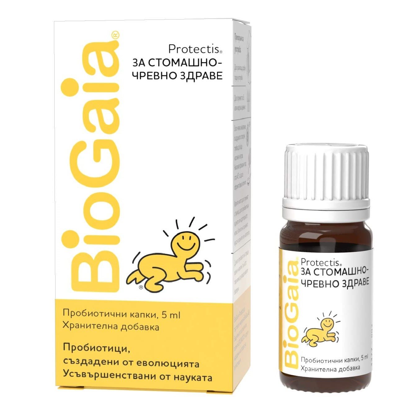 Биогайа Протектис капки за бебета е хранителна добавка, предназначена за възстановяване и поддържане на естествения чревен баланс и имунитета, като съдържа Lactobacillus reuteri Protectis, който възстановява CD 4+ T-клетките, като по този начин стимулира имунния отговор, препоръчва се като превантивно средство за предпазване от диария при недоносени деца, както и при лечение на антибиотик-индуцирана диария, причинена от C.dificille. Биогайа Протектис действа имуностимулиращо и намалява риска от настъпване на чревни инфекции и простуда. BioGaia Protectis е продукт, подходящ за децата още от кърмаческа възраст, като е преминал множество клинични проучвания и е одобрен като ефективен и напълно безопасен.