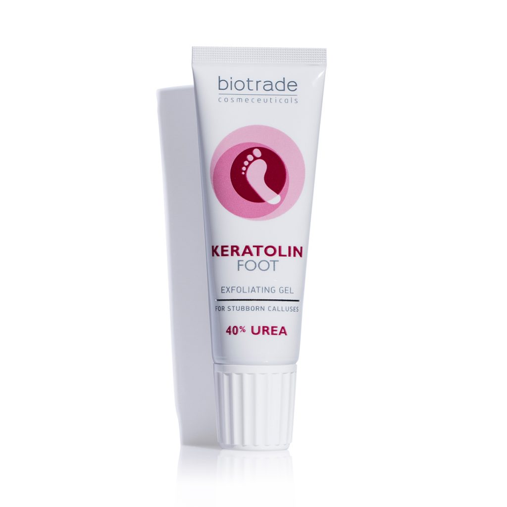 Гелът за удебелена кожа и нокти Кератолин от biotrade премахва загрубялата мъртва кожа, упоритите мазоли и кокошия трън. Гелът е подходящ за всички типове кожа и може да се прилага и върху нокти, лакти и колена. Предлага се в опаковка от 15 мл.Състав: Уреа 40 % – мощно излющващо действие