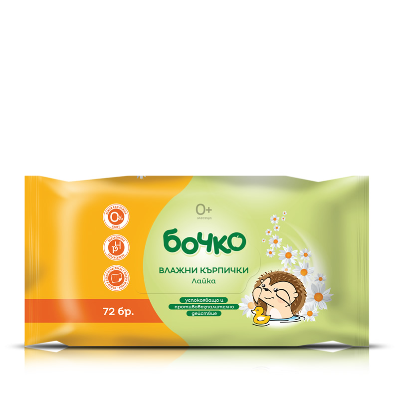 Бебешките влажни кърпички Бочко почистват, успокояват и защитават кожата, без да я изсушават.