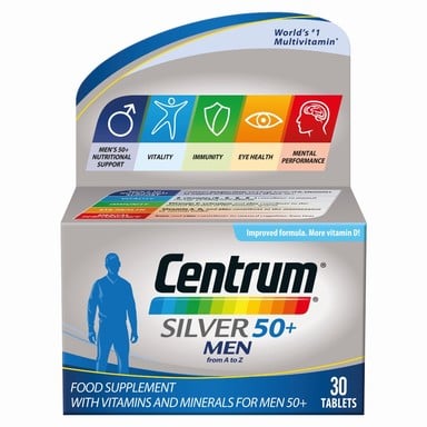 Хранителна добавка с мултивитамини и минерални, специално създадена за мъже на възраст 50 +, съобразена с променящите се здравни потребности на мъжете над тази възраст. С коригирани нива на основните хранителни вещества като витамини, с цел да помогне за освобождаването на енергията от храната: витамин С, цинк и селен подпомагат нормалното функциониране на имунната система, витамини А и В2 подкрепят нормалното зрение и витамин В1 за нормална сърдечна функция.