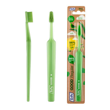 TePe GOOD ™ е удобна за употреба четка за зъби, подходяща за по-големи деца и възрастни. Конусовидната глава улеснява достъпа, а заоблените влакна гарантират нежно почистване.