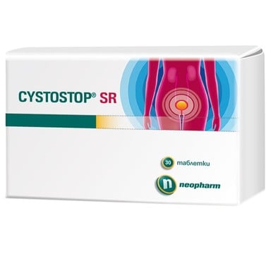 Препарат с удължено освобождаване на съставките и улеснен прием, който бързо и трайно облекчава симптомите на цистит на Неофарм. Таблетките на Cystostop SR са произведени по иновативна технология, позволяваща удължено, постепенно освобождаване на съставките на препарата. Това осигурява постоянни адекватни концентрации на активните вещества в организма, по-висока ефективност и улеснен прием. Ефектът на Цистостоп СР е бърз и се усеща още в първите часове след приемането му.? Продуктът не позволява на бактериите предизвикващи дискомфорт, да се захванат за стените на уринарния тракт. Така те остават свобoдни в урината и се изхвърлят от организма с акта на уриниране. Cystostop SR действа и на бактериите, които вече са се захванали за стените на уринарния тракт, като уленява тяхното отделяне и отвеждане навън от организма.