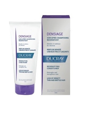Уплътняващ балсам Ducray Densiage разплита косата и я прави по- устойчива. Придава еластичност и мекота. Съхранява цвета на боядисаната коса. Ducray Densiage действа върху косменото стъбло и космения фоликул срещу стареене на косата, причинено от промени свързани с възрастта и физиологията, химични и термични третирания, негативното влияние на UV лъчите и свободни радикали. Високо – ефективеният комплекс с екстракт от Китайски жен-шен и Юлибрисинова албиция ( Копринено дърво ) има антиоксидантно действие, осигурява защита срещу оксидативен стрес, активира микроциркулацията в комбинация с масаж.
