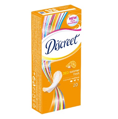 Ежедневните превръзки Discreet позволяват на кожата в интимната зона да диша свободно и осигуряват до 12 часа свежест и комфорт. Те са толкова тънки под 1 мм, че дори не се усещат, а формата им пасва на всеки тип бельо, благодарение на мултиформ качествата им. Със залепване от край до край, за да останат фиксирани рез целия ден. Ароматизирани.