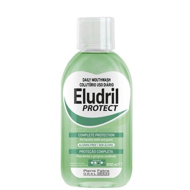 Вода за уста предназначена за цялостна комплексна защита на устната кухина. Елудрил Протект се бори срещу натрупването и задържането на бактерии върху зъбите, които са отговорни за образуването на плака и зъбен камък, както и за възпаление на венците.