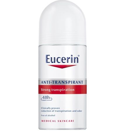 Eucerin Рол-он дезодорант против силно изпотяване е подходящ за хора, които имат силно изпотяване. Съдържа висока концентрация на алуминиев хлорхидрат и предпазва от изпотяване и неприятна миризма. Формулата му без алкохол, клинично доказано осигурява 48-часова защита срещу изпотяване. Подходящ е за чувствителна кожа или кожа след бръснене. Има свеж, унисекс аромат. Предлага се в опаковка от 50 мл.
