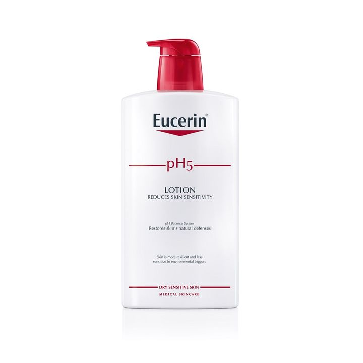 Eucerin pH5 е нежен лосион, разработен за нуждите на чувствителната кожа на тялото. Той съдържа pH5 EnzymeProtection – формула, която клинично доказано активира естествените ензими на кожата. Заздравявайки защитните механизми на кожата отвътре, формулата му помага за поддържането на нивата на pH, подкрепя регенерацията и възстановява естествените водни депа на кожата за до 24 часа. Лосионът предотвратява 90% от навлизането на полен през кожата и затова е подходящ за употреба върху кожа, склонна към алергии. Благодарение на декспантенола, формулата има лековити свойства за рани. Предлага се в опаковка от 400 мл.