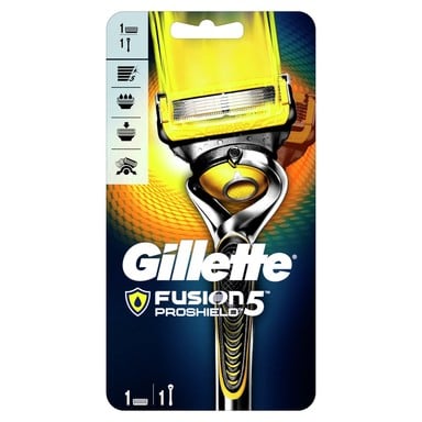 Система самобръсначка с едно допълнително ножче на марката Жилет. Ножчетата на Фюжън Про Шилд имат овлажняващи ленти преди и след остриетата, които предпазват от дразнене по време на бръснене. 5 прецизни ножчета, които отрязват и най-късите косъмчета без нуждата от голям натиск върху кожата. MicroComb система, която помага за навеждането на космите към остриетата. Прецизен тример на гърба, подходящ за труднодостъпни места (нос и бакенбарди). Самобръсначката е съвместима със всички ножчета Fusion.