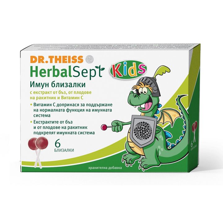 Dr. Theiss HerbalSept Kids Immun Lolipops са медицинско изделие под формата на близалка, което възстановява защитните сили на организма и повишава детския имунитет. ХербалСепт Кидс Имун близалки съдържат екстракти от бъз, ракитник и витамин C, които подпомагат здравето, жизненост и общия тонус на детето. NaturProdukt е българо-немска компания, основана през 1993 г. в грaд София. От тогава, вече повече от 25 години, Натурпродукт разширява каталога си, който към момента съдържа над 160 продукта – хранителни добавки, медицински изделия, дермокозметика и лекарствени продукти на натурална основа – клинично и дерматологично тествани и с доказани резултати.