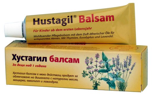 Hustagil Balsam представлява лекарствен продукт без лекарско предписание за деца и възрастни под формата на маз за прилагане върху кожата. Хустагил балсам съдържа етерични масла от мащерка, евкалипт и лавандула, които облекчават дишането. Съдържа бадемово масло, пантенол и витамин Е. Хустагил балсам съдържа комбинация от добре познати етерични масла, които се допълват взаимно. Маслото от мащерка разширява бронхите и улеснява дишането. Евкалиптовото масло втечнява секрета и действа отхрачващо. Лавандуловото масло придава фин естествен аромат на балсама и допринася за приятното приложение на продукта. Съдържанието на бадемово масло и витамин Е довежда до омекотяване на кожата. Само за външно приложение. Подходящ е за деца и възрастни. Отличава се с фина миризма на етерични масла и меко действие – не дразни кожата. Не съдържа оцветители, консерванти и синтетични парфюмни композиции. Отмива се лесно със студена вода.