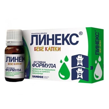Линекс бебе е пробиотик, предназначен за бебета и малки деца. Дневната доза от 6 капки съдържа 1 милиард полезни бактерии – Бифидобактерии ВВ-12.