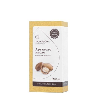 Аргановото масло Икаров забавя процесите на стареене и има антиоксидантно действие. То хидратира, подобрява еластичността, тонизира и избистря тена. Регулира мастната секреция и има благоприятно действие при мазна и акнеична кожа. Овлажнява сухата кожа на скалпа, възстановява изтощената и късаща се коса, подхранва и заздравява ноктите. Подходящо за всеки тип кожа, за лице, тяло, коса, нокти. Предлага се в опаковка от 30 мл.