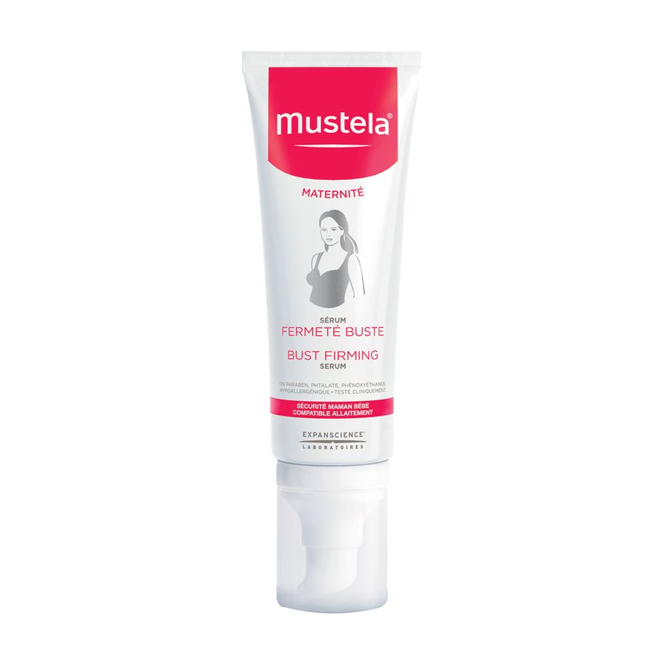 Стягащ серум за бюст, който предпазва кожата от отпускане и загуба на еластичност. Също така, продуктът на Мустела увеличава хидратацията, облекчава напрежението и успокоява кожата на гърдите. Той е специално формулиран за периода на бременността, като успокоява опъването и тежестта в бюста. Благодарение на комбинацията от съставки с естествен произход, серумът предпазва кожата от отслабване и загуба на еластичност. Включените Elastoregulator® и Lupeol стимулират производството на фибри и стягат кожата, а успокояващите пептиди от авокадо намаляват дискомфорта. Добавените невен и глицерин хидратират кожата. Продуктът е тестван под дерматологичен контрол. Резултатите показват, че кожната еластичност е подобрена и еластичността прави бюста по-устойчив на промените в обема. Продуктът е с ?0% парабени, фталати, феноксиетанол, хлорфеназин. Хипоалергенна формула с висока степен на поносимост, тествана под Дерматолгичен и Гинекологичен контрол за оптимална безопасност за майката и детето. Може да се използва по време на кърменето при спазване правилата на хигиена при кърмене. Предлага се в опаковка от 75 мл.