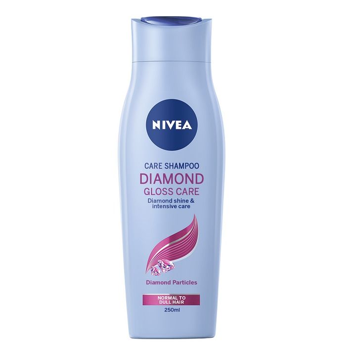Специалната формула с модерна технология, отразяваща светлината дарява косата с неотразим блясък. Формулата съдържа диамантени частици и Nutri-Essences – ценна комбинация от масло от макадамия и Eucerit®, които подсилват косата, заздравяват всеки кичур и придават ослепителен блясък. Предназначен за нормална до суха коса. Нивеа Даймънд Глос Шампоан за блясък осигурява на косата жизненост и лекота. След употребата му косата ви ще бъде мека, красива и бляскава. Дерматологично тестван продукт.