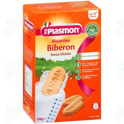 Бебешките бишкоти биберон на Плазмон са чудесно допълнение към мляко, плодово пюре или чай. Те се разтварят мигновено, не съдържат яйца, оцветители, консерванти и палмово масло. Plasmon бишкоти биберон са съставени от: царевично нишесте, захар, обезмаслено мляко на прах, масло (от мляко), млечен протеин, слънчогледово олио, диастизирано оризово брашно (4%), амониев карбонат, калциев карбонат, емулгатор: слънчогледов лецитин, аромати, железен фумарат, аромати, ниацин, рибофлавин, тиамин, витамин B6.