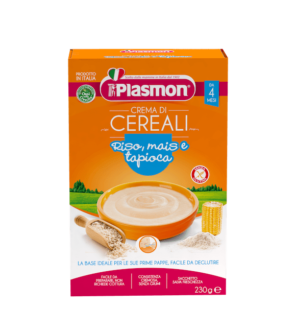Безглутенова каша с ориз, царевица и тапиока, богата на фибри, калций и витамин В. Нежна консистенция без бучки, подходяща за запознаване на бебето с нови вкусове.Съставки: зърнени брашна 71% (оризово, царевично), брашно от тапиока 14%, хранителни влакнини (инулин), калциев фосфат, калциев карбонат, витамин С, ниацин, пантотенова киселина, рибофлавин, тиамин, витамин В6.