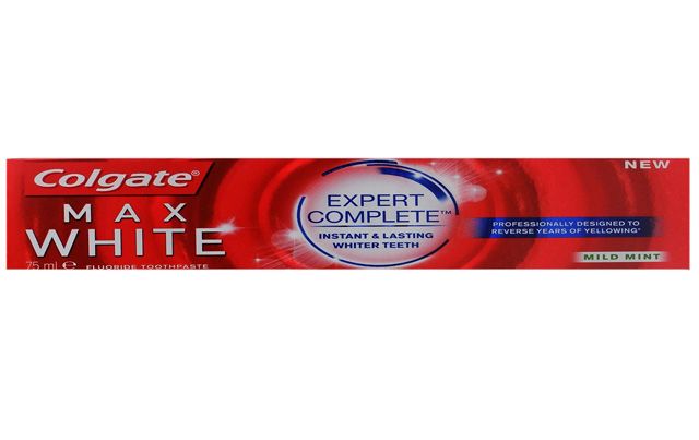 В Колгейт Макс Уайт Експерт Къмплийт паста за зъби е включена технологията Expert Complete, която комбинира по уникален начин – водороден пероксид и оптичен избелител за ултра бели зъби. За най-голяма чистота и здраве на зъбите, комбинирайте с почистване с конец за зъби и вода за уста с марка Колгейт.