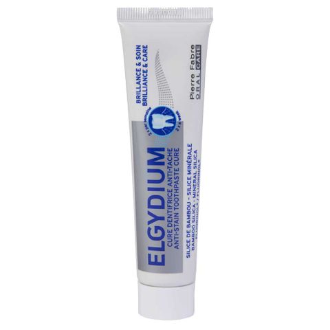 Благодарение на своята специфична и полираща формула паста за зъби Елгидиум премахва остатъчни оцветявания (кафе, чай, никотин, червено вино) и полира зъбната повърхност като щади емайла. Зъбите стават гладки и блестящи. Съдържа комбинация от минерални и растителни силикати за нежно полиране с оптимален ефект. Ментовият вкус оставя приятно чувство на свежест. За да се гарантира ефективността на формулата и за по-добър полиращ ефект, способността й да се пени е сведена до минимум. Пастата удължава ефекта постигнат от професионални процедури за избелване. Тя има повишена абразивност за премахване на упорити повърхностни оцветявания.