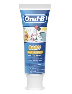 Детската паста за зъби на Орал-Би, почиства млечните детски зъбки от плака и бактерии.