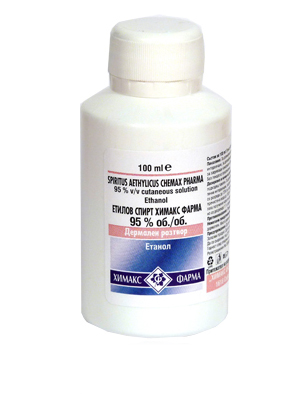 Етилов спирт 95 % се прилага за дезинфекция на кожата след подходящо разреждане преди инжекции, хирургични интервенции, за дезинфекция на ръце, загряващи компреси и фрикции.