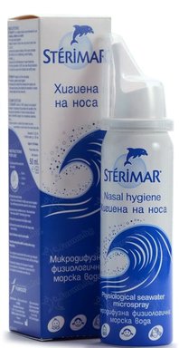 Sterimar Nasal Spray е природен продукт, съдържащ морската вода, взета от дълбочина на разстояние повече от 11 км от морския бряг, който може да се използва за ежедневна хигиена на носа при кърмачета, деца и възрастни. Спреят за нос Стенимар спомага за възстановяване естествената влажност на носа (срещу последиците на климатичните инсталации, централното отопление, хъркането и други), да се подготви и улесни въздействието на определени медикаменти за нос, да се почисти носа от секретите, а също така и за профилактика на заболявания на УНГ и за почистване на лигавицата при запушен нос. Благодарение на финия микроспрей Sterimar, както и на морски минерални соли и олигоелементи, съдържащи се в морската вода, Sterimar нежно овлажнява носа.