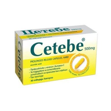 Cetebe представлява специално създадена хранителна добавка от GSK в подкрепа на имунната система, съдържаща висока доза витамин C, който повишава естествените защитни сили и устойчивост на органзима срещу инфекции и простудни заболявания. Цетебе се препоръчва за употреба при настинка, тъй като намалява интензитета и продължителността на простудните състоянния. Цетебе се препоръчва още и за запълване на нуждите от витамин Ц при състояния, свързани с недостиг на този важен витамин. Нуждите от витамин Ц а организма могат да се повишат по време на бременност и кърмене, при нездравословен начин на живот, тютюнопушене, употреба на алкохол, небалансирано хранене, недохранване, при стрес, тежък физически труд, при възрастни хора над 65 години. Витамин Ц представлява основен витамин, който играе важна роля в растежа и поддържането на здрави кости, зъби, венци и кожа. Капсулите Цетебе са с удължено освобождаване, което осигурява витамин Ц на органзима в продължение на 8-12 часа.