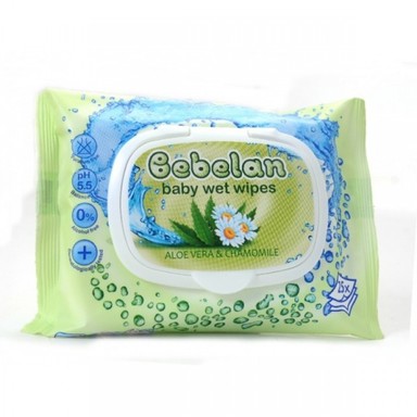 Плътни и пухкави влажни кърпи, изработени от специален нетъкан текстил, с лек и свеж аромат. Изключително приятни и меки при допир до нежната бебешка кожа. Със своята формула с натурални екстракти от Лайка и Алое Вера, влажните кърпи BEBELAN освежават, деликатно почистват и парфюмират. Удобни са за употреба навсякъде и по всяко време. С пластмасов капак, който затваря пакета идеално и запазва свежестта и влагата на кърпичките.